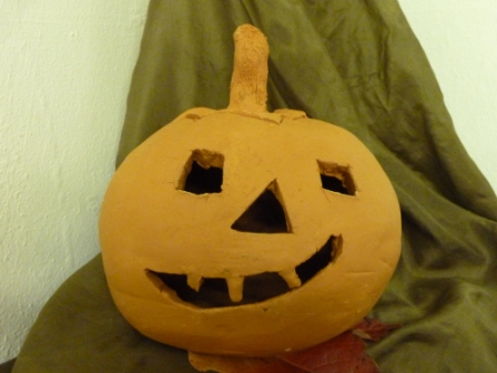 - Kürbiszeit! Daumenschalentechnik, roter Ton mit Farbkörpern eingerieben